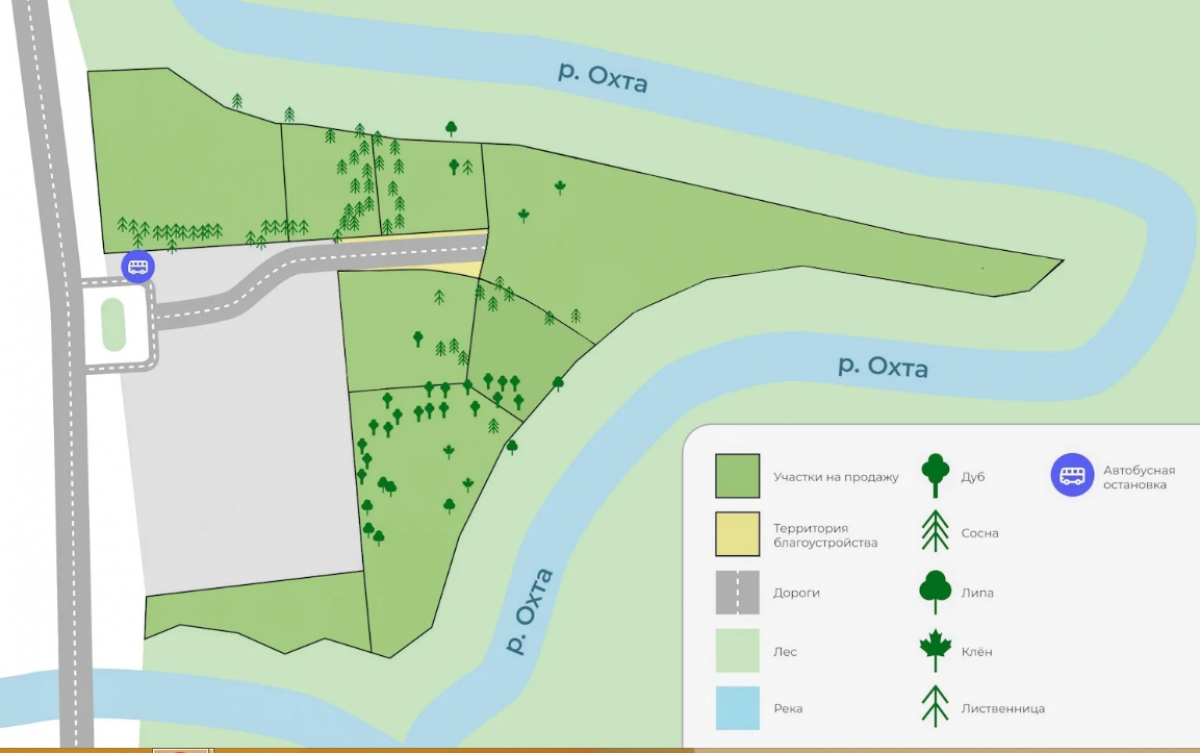 Уютные и живописные участки на берегу Охты подарят своим обладателям умиротворение и позволят насладиться всей красотой окружающей природы. А близкое расположение к городу – удобство и преимущества мегаполиса.